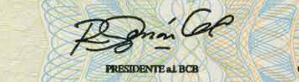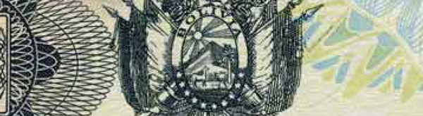 • IMAGEN OCULTA (LATENTE) - Al lado izquierdo del rostro, en la franja de color rojo, al observar el billete en posición casi horizontal desde la esquina inferior derecha a la altura de los ojos, se visualiza el texto "BRC".