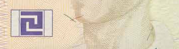 • En algunas figuras geométricas, a los lados del personaje de pie, se encuentra el texto "BANCO DE LA REPÚBLICA" y "BRC".
